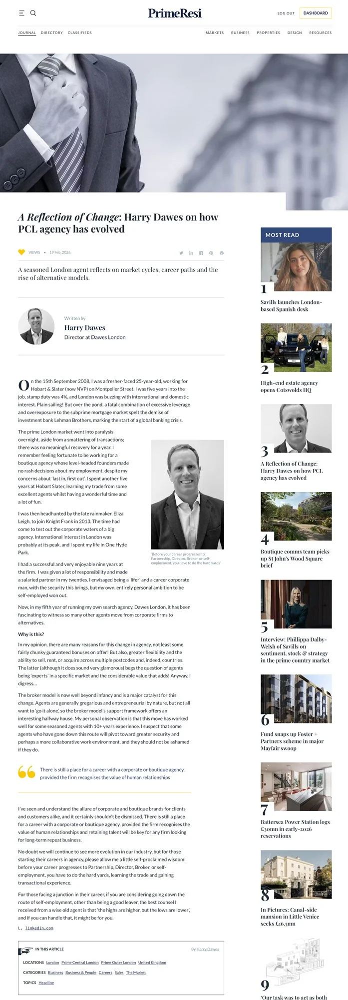 The prime London market went into paralysis overnight, aside from a smattering of transactions; there was no meaningful recovery for a year. I remember feeling fortunate to be working for a boutique agency whose level-headed founders made no rash decisions about my employment, despite my concerns about 'last in, first out'. I spent another 5 years at Hobart Slater, learning my trade from some excellent agents whilst having a wonderful time and a lot of fun.